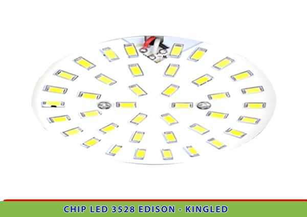 # Có 2 loại chip led thường được dùng trong đèn downlight âm trần là: ___ Chip LED 5730 có công suất 0,5W/ 1 mắt LED. Với cùng công suất đèn 12W chỉ cần bố trí 24 mắt chip có ưu điểm là tiết kiệm diện tích, giá thành nhưng do công suất mắt LED lớn làm khó khăn tản nhiệt làm rút ngắn tuổi thọ đèn ___ Chip LED 3528 có công suất 0,2W/1 mắt LED. Sử dụng loại này có ưu điểm nâng cao tuổi thọ của đèn do tản nhiệt tốt hơn. Ngoài ra vì công suất từng mắt LED chỉ 0,2 nên ánh sáng sẽ đồng đều và giảm độ chói hơn chip LED 5730. Sản phẩm đèn downlight âm trần DL-6, DL-8, DL12 của Kingled từ năm 2018 đều được sử dụng chip LED 3528 đến từ hãng EDISON cho quang hiệu đạt trên 90Lm/W, chỉ số hoàn màu Ra>90 .