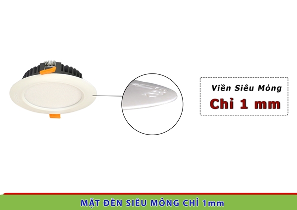 Để tăng tính thẩm mỹ mặt đèn được in chìm logo nên không bị lộ vết đen trên mặt trần. Đặc biệt mặt đèn được thiết kế và gia công siêu mỏng chưa tới 1mm vuốt cong mềm mại không tạo cảm giác lồi lên trên mặt trần.