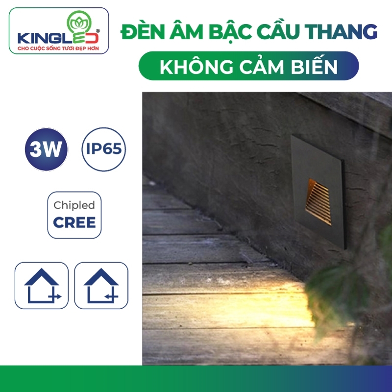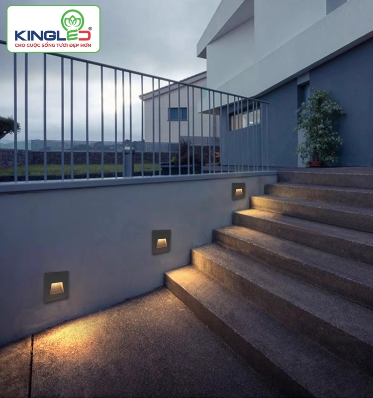 Đèn âm bậc cầu thang Kingled không cảm biến được ứng dụng trong chiếu sáng và trang trí khu vực cầu thang, hành lang, sân vườn, trong nhà,...Thiết kế góc chiếu sáng hình thang mới lạ, không gây chói mắt cho người đi lại.