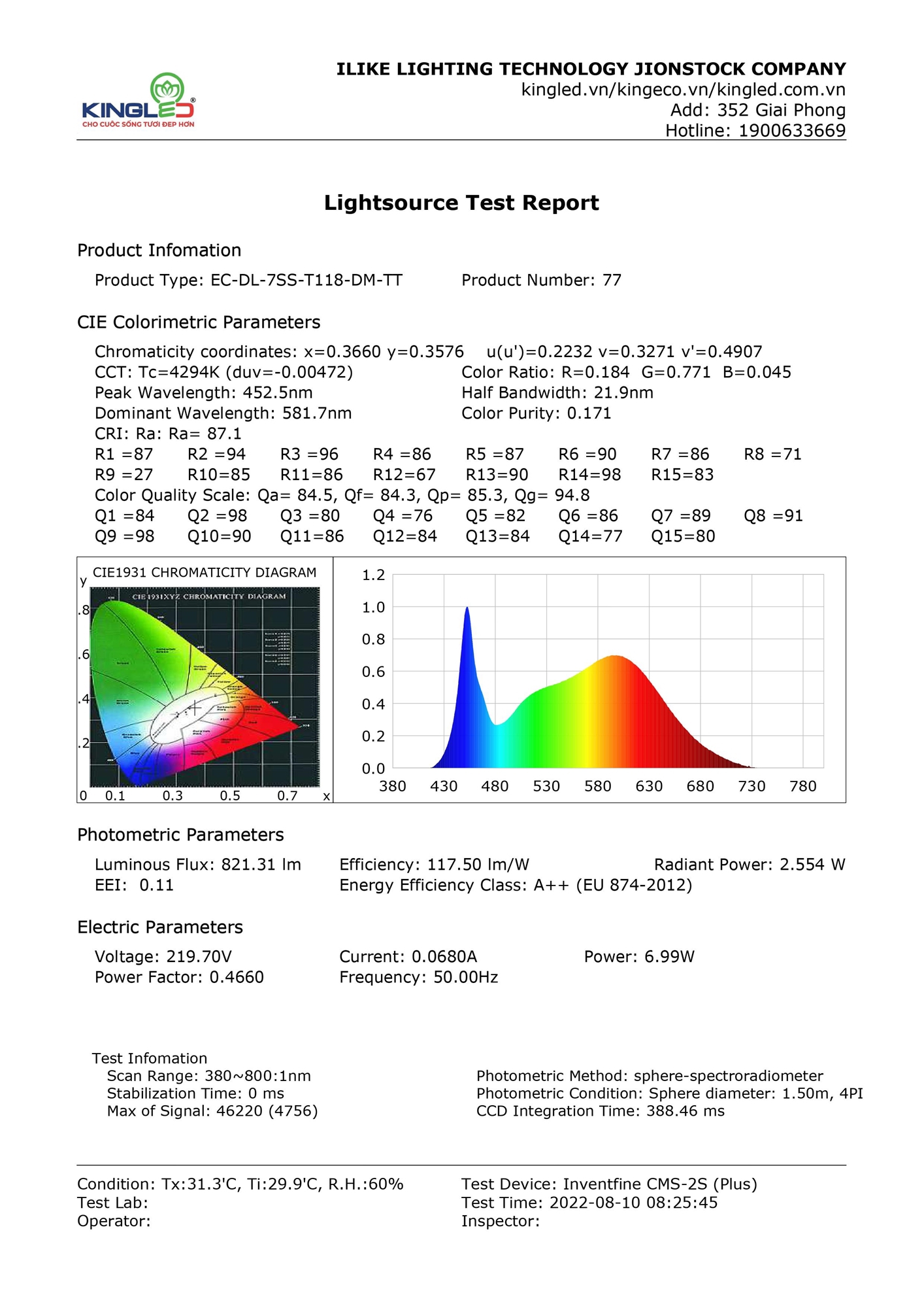 Bừng sáng không gian với công suất phát sáng lên tới 100 Lm/W. Hiệu năng phát sáng không đổi trong thời gian dài phản ánh chân thực chất lượng ánh sáng và khả năng tiết kiệm điện năng so với đèn cùng loại.