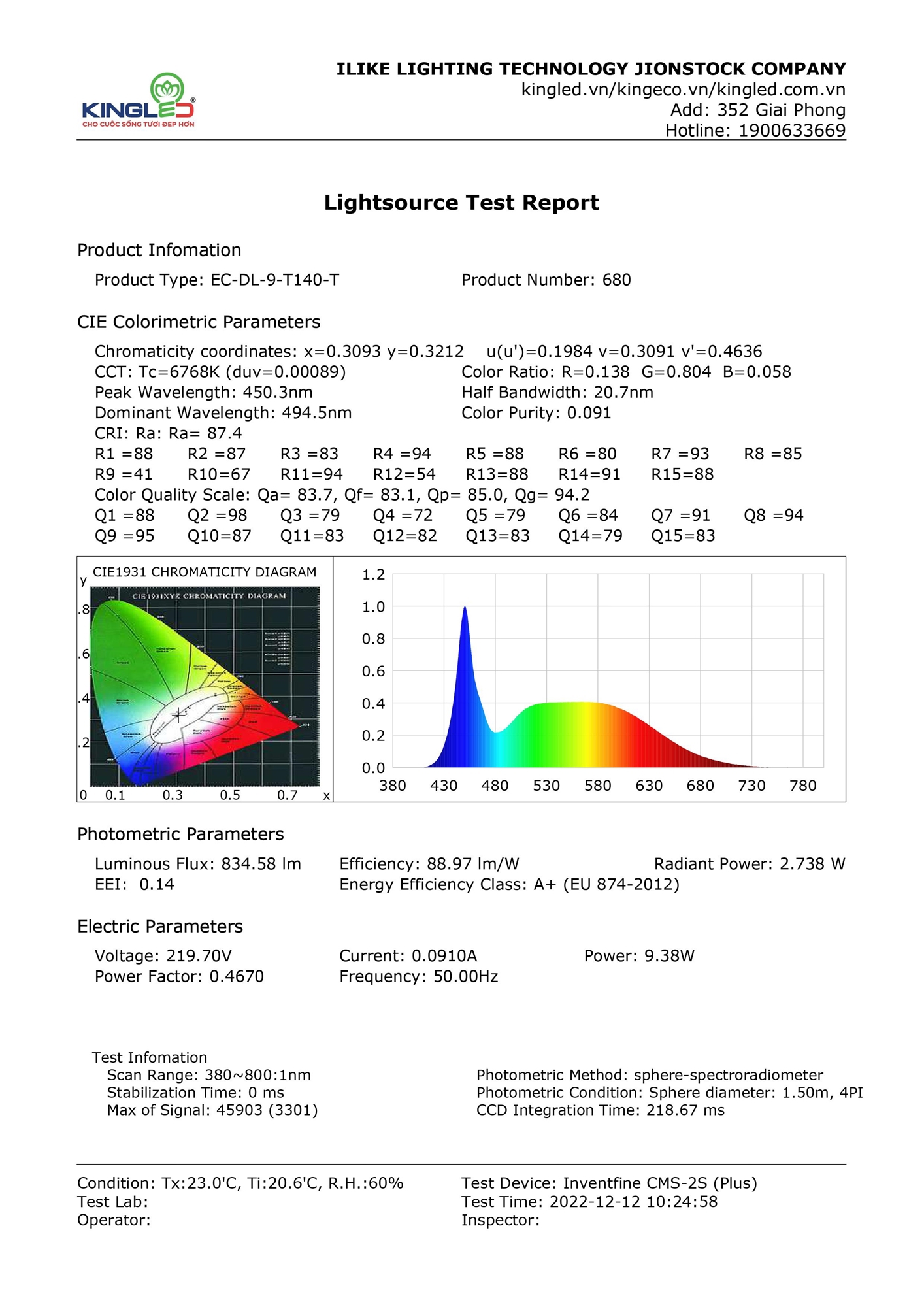 Bừng sáng không gian với hiệu suất chiếu sáng lên tới 100 Lm/W. Hiệu năng phát sáng của đèn led Kingled không đổi trong thời gian dài phản ánh chân thực chất lượng ánh sáng và khả năng tiết kiệm điện năng so với đèn cùng loại.