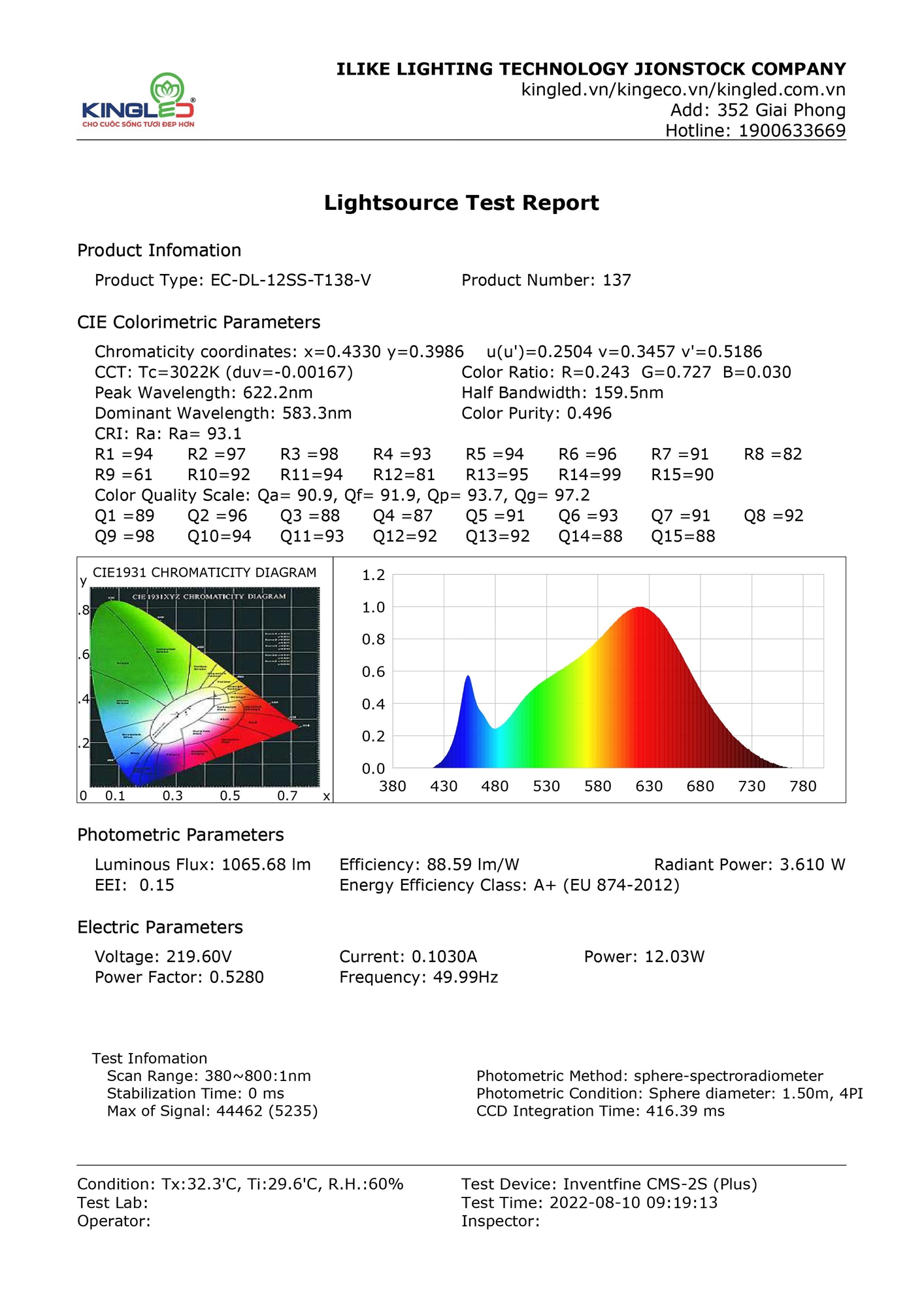 Bừng sáng không gian với công suất phát sáng lên tới 100 Lm/W. Hiệu năng phát sáng không đổi trong thời gian dài phản ánh chân thực chất lượng ánh sáng và khả năng tiết kiệm điện năng so với đèn cùng loại.
