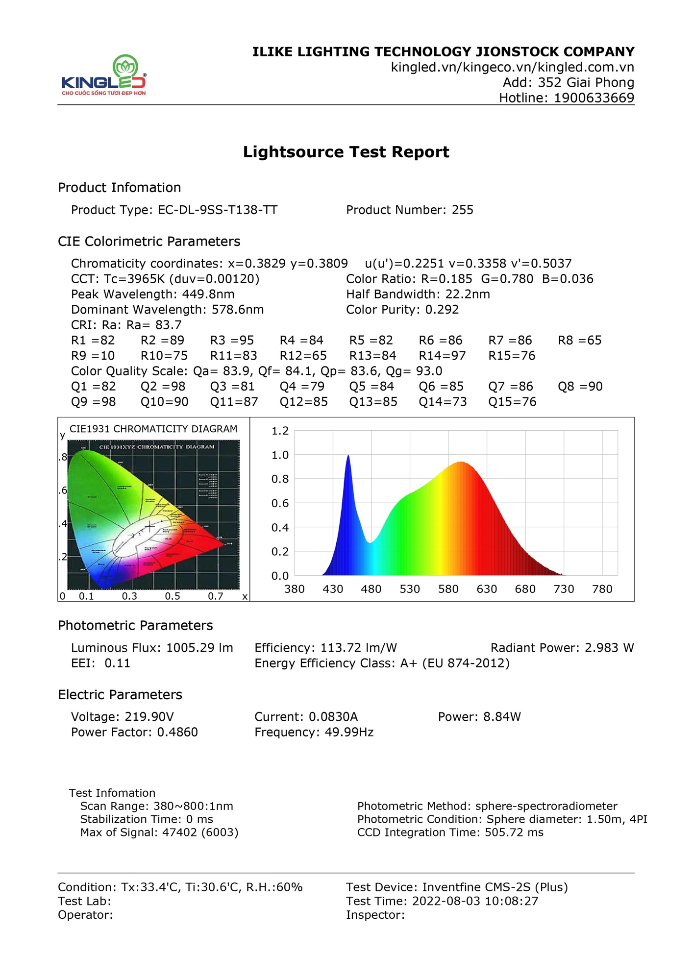 Bừng sáng không gian với công suất phát sáng lên tới 100 Lm/W. Hiệu năng phát sáng của đèn led Kingled không đổi trong thời gian dài phản ánh chân thực chất lượng ánh sáng và khả năng tiết kiệm điện năng so với đèn cùng loại.