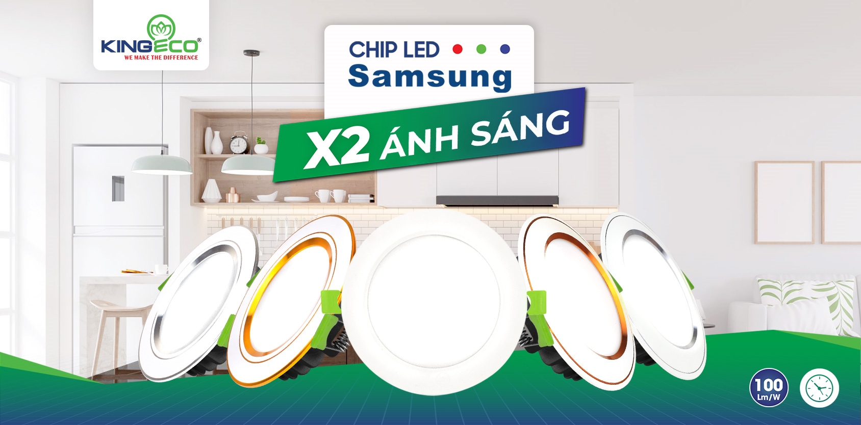 Bừng sáng không gian với công suất phát sáng lên tới 100 Lm/W. Hiệu năng phát sáng không đổi trong thời gian dài phản ánh chân thực chất lượng ánh sáng và khả năng tiết kiệm điện năng so với các loại đèn led cùng loại.