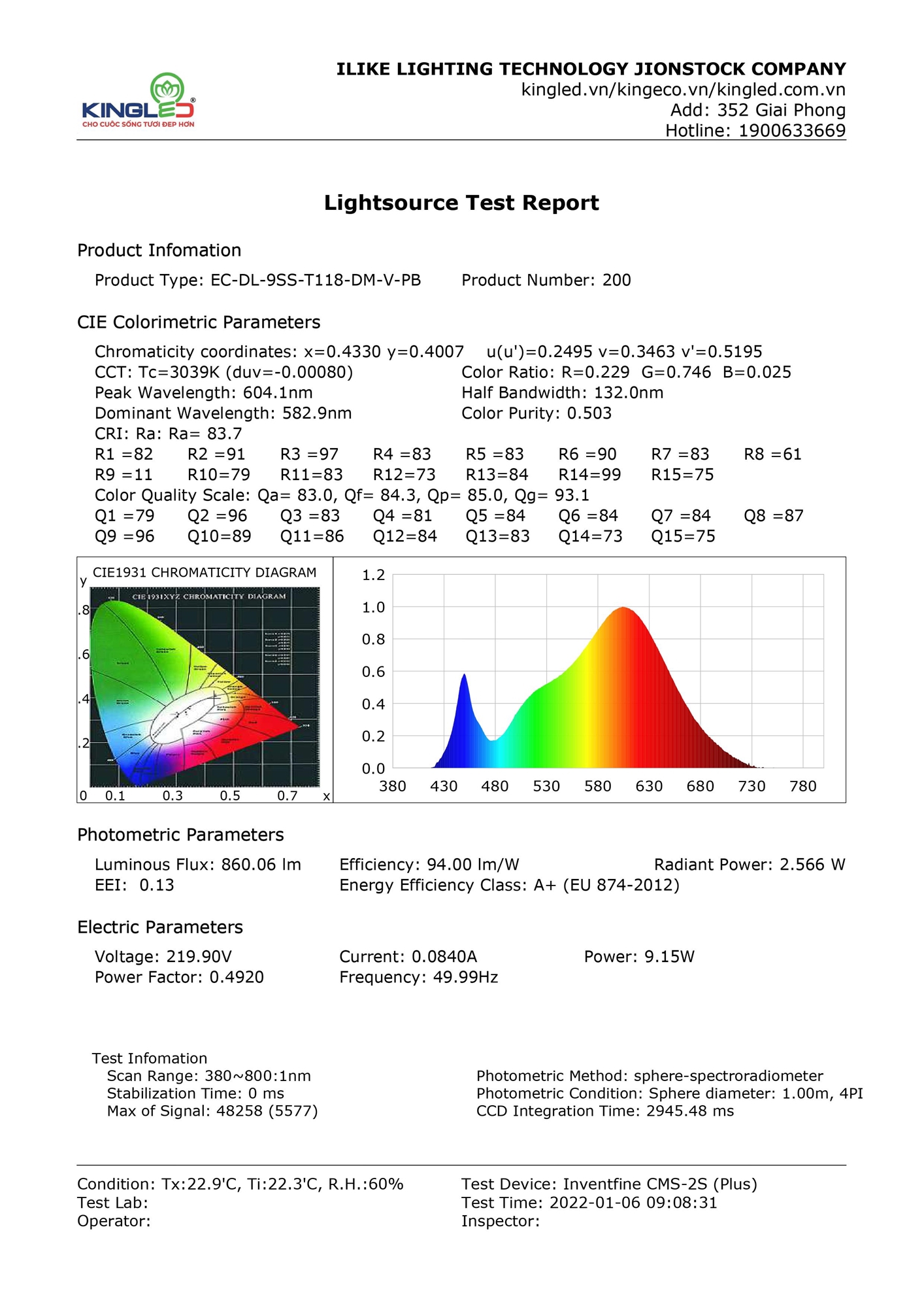 Bừng sáng không gian với công suất phát sáng lên tới 100 Lm/W. Hiệu năng phát sáng không đổi trong thời gian dài phản ánh chân thực chất lượng ánh sáng và khả năng tiết kiệm điện năng so với đèn cùng loại.
