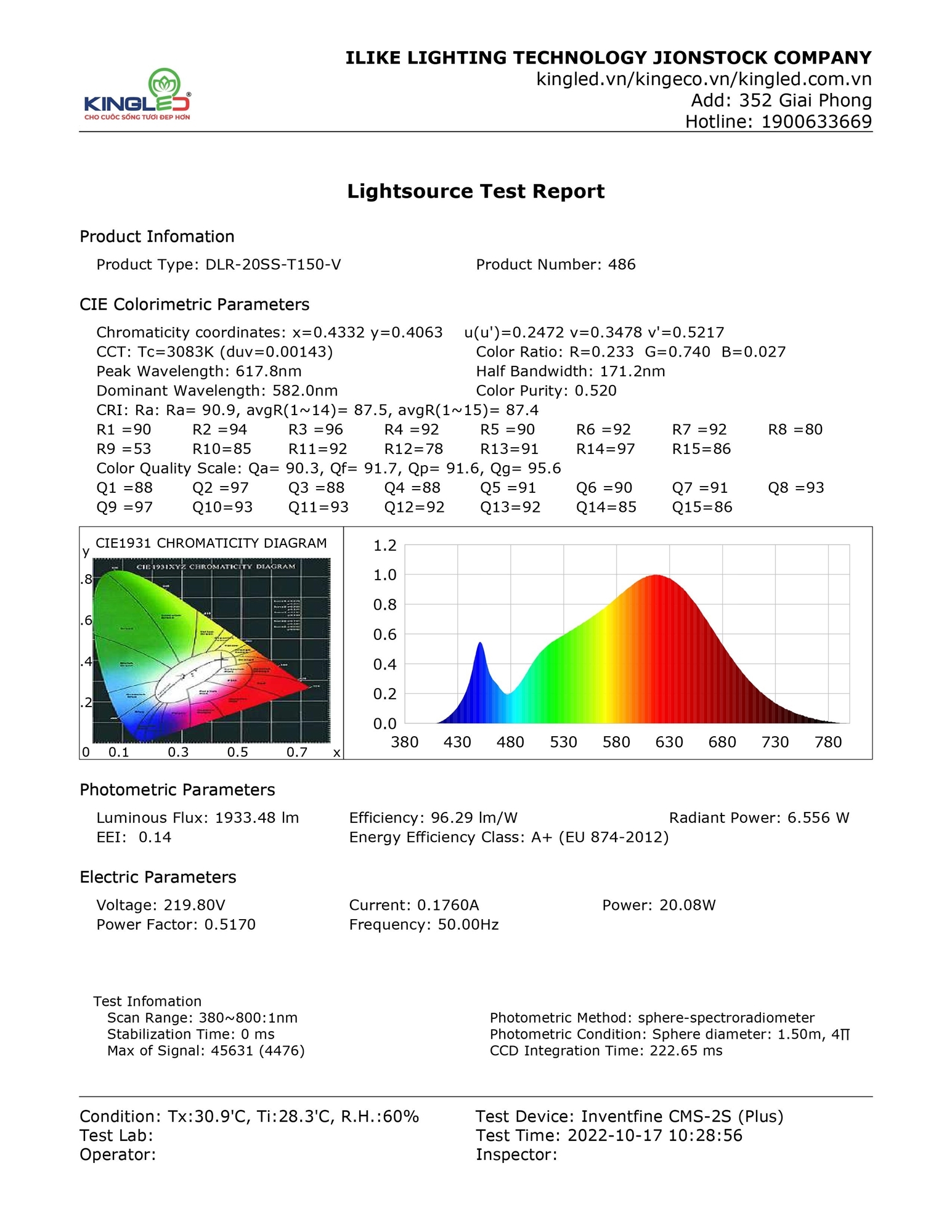 - Độ hoàn màu CRI > 92. Đây là dòng sản phẩm của Kingled có CRI cao nhất từ trước đến nay cho hình ảnh chân thực giống ánh sáng tự nhiên nhất.