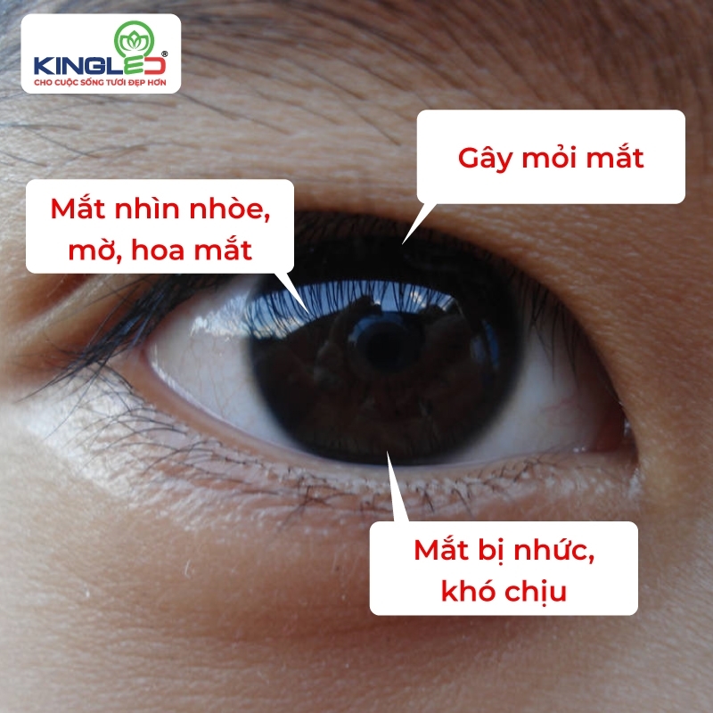 Khi đèn led nhấp nháy càng nhanh, mắt phải điều tiết nhiều mới bắt kịp với hình ảnh. Ánh sáng liên tục thay đổi làm kích thích các tế bào cảm thụ ánh sáng tiết ra chất cảnh báo cơ thể. Đôi mắt bị kích thích trở nên nhức, mỏi hơn. Tình trạng đèn nhấp nháy kéo dài có nguy cơ gây nên một số bệnh về mắt như cận thị, viễn thị, loạn thị...