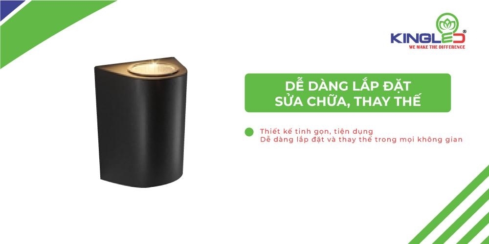 Đèn gắn tường với thiết kế tinh gọn, tiện dụng giúp dễ dàng lắp đặt và thay thế trong mọi không gian.