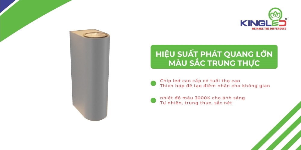 Đèn gắn tường có nhiệt độ màu 3000K cho ánh sáng màu vàng tự nhiên, trung thực, sắc nét.