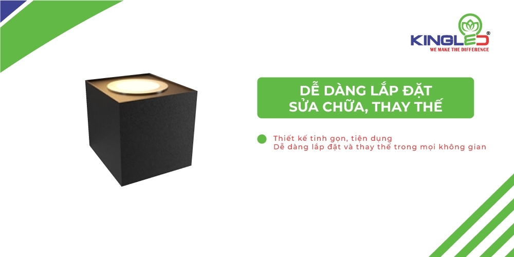 Đèn gắn tường với thiết kế tinh gọn, tiện dụng giúp dễ dàng lắp đặt và thay thế trong mọi không gian.