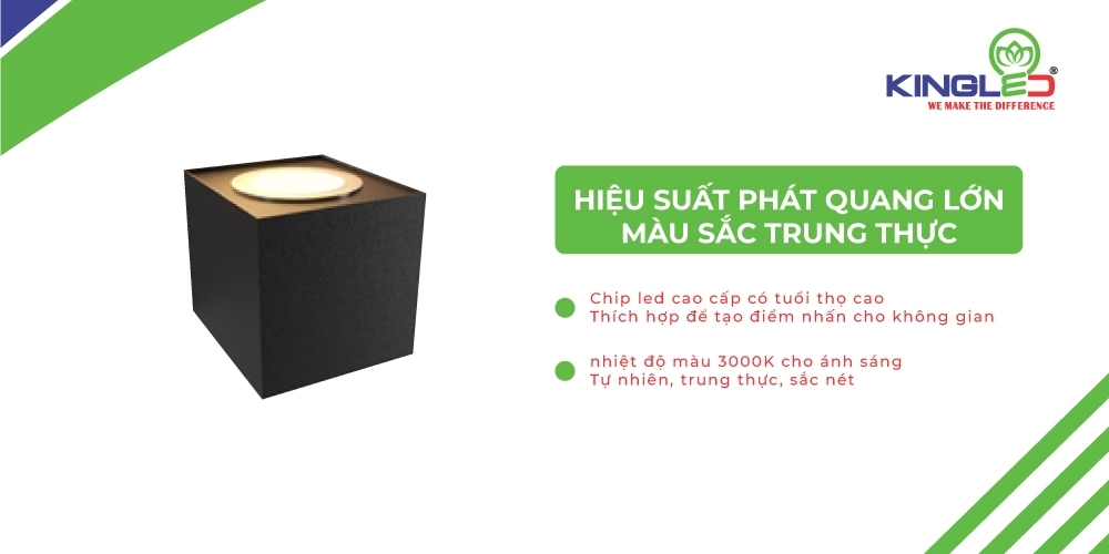Đèn gắn tường có nhiệt độ màu 3000K cho ánh sáng màu vàng tự nhiên, trung thực, sắc nét.