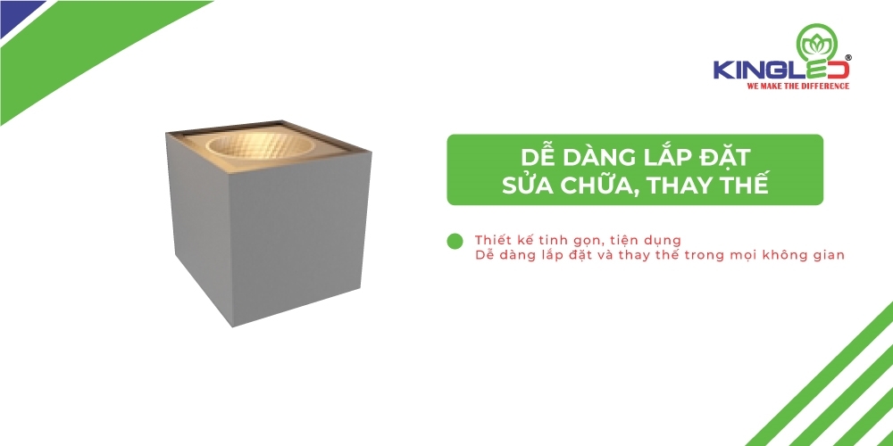 Đèn gắn tường với thiết kế tinh gọn, tiện dụng giúp dễ dàng lắp đặt và thay thế trong mọi không gian.