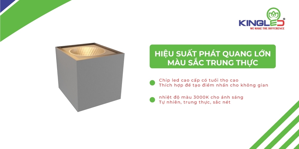 Do sử dụng Chip led cao cấp có tuổi thọ cao nên đèn gắn tường thích hợp để tạo điểm nhấn cho không gian.