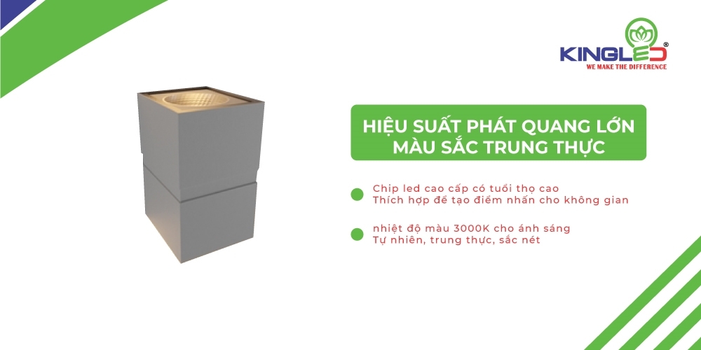 Do sử dụng Chip led cao cấp có tuổi thọ cao nên đèn gắn tường thích hợp để tạo điểm nhấn cho không gian.