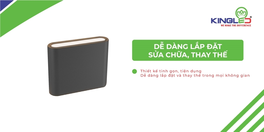 Đèn gắn tường với thiết kế tinh gọn, tiện dụng giúp dễ dàng lắp đặt và thay thế trong mọi không gian.