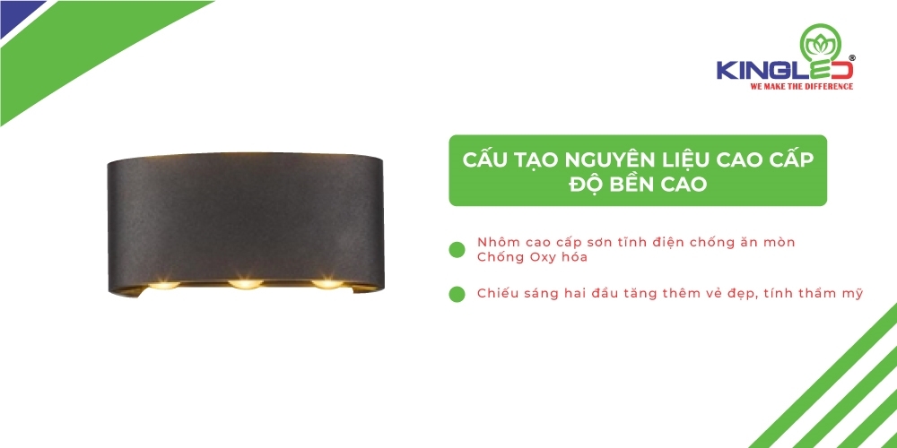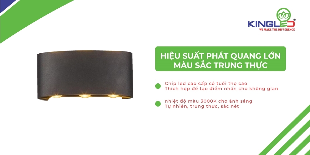 Do sử dụng Chip led cao cấp có tuổi thọ cao nên đèn gắn tường thích hợp để tạo điểm nhấn cho không gian.