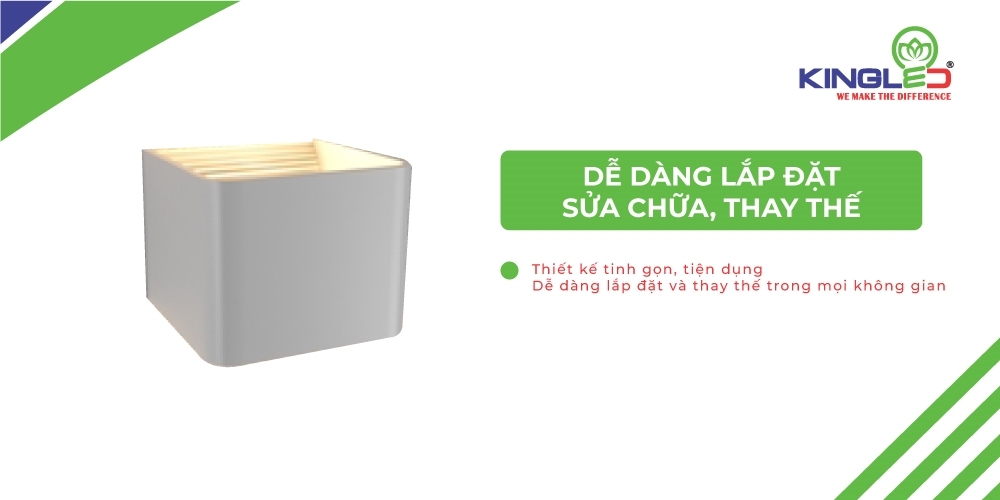 Đèn gắn tường với thiết kế tinh gọn, tiện dụng giúp dễ dàng lắp đặt và thay thế trong mọi không gian.
