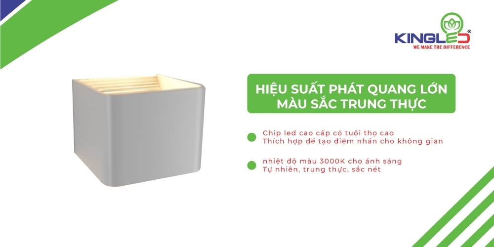 Do sử dụng Chip led Cree, Bridgelux cao cấp có tuổi thọ cao nên đèn gắn tường thích hợp để tạo điểm nhấn cho không gian.