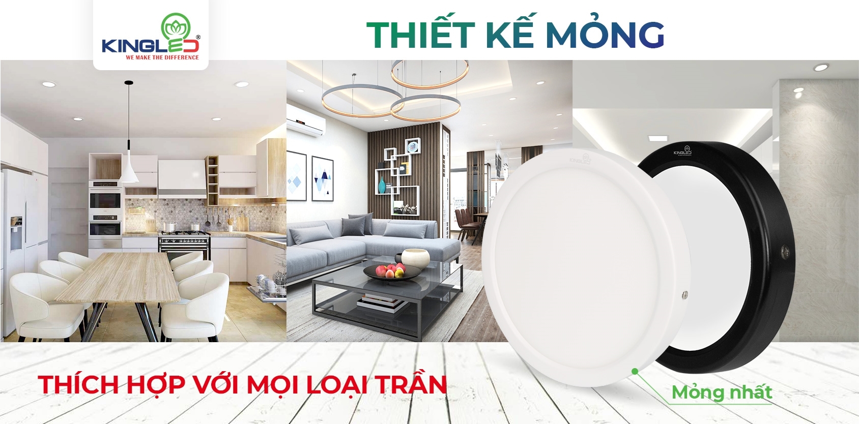 Thân đèn mỏng chỉ 25,5mm vừa tạo thẩm mỹ vừa dễ dàng lắp đặt trên mọi loại trần
