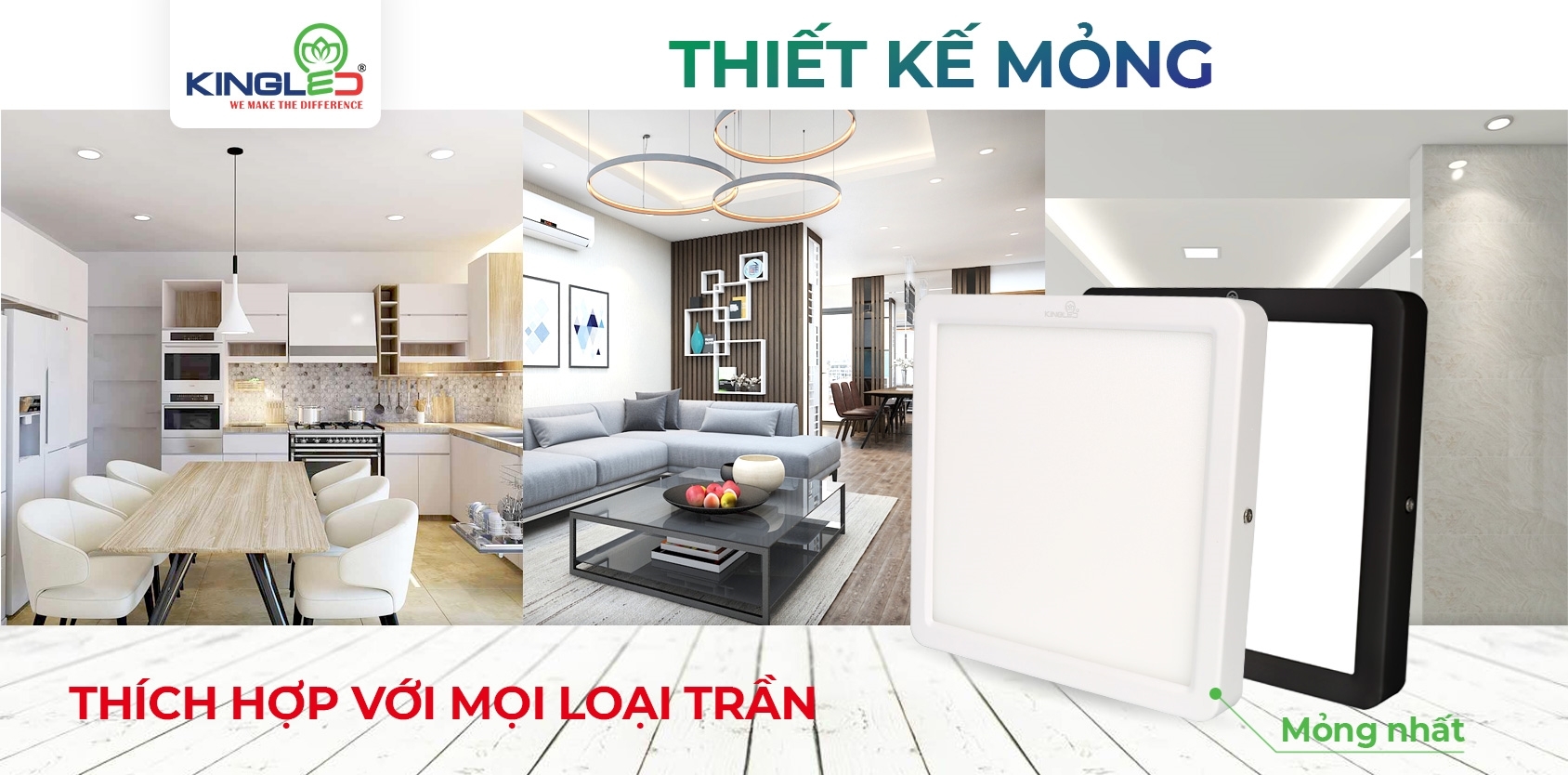 Thân đèn mỏng chỉ 25,5mm vừa tạo thẩm mỹ vừa dễ dàng lắp đặt trên mọi loại trần