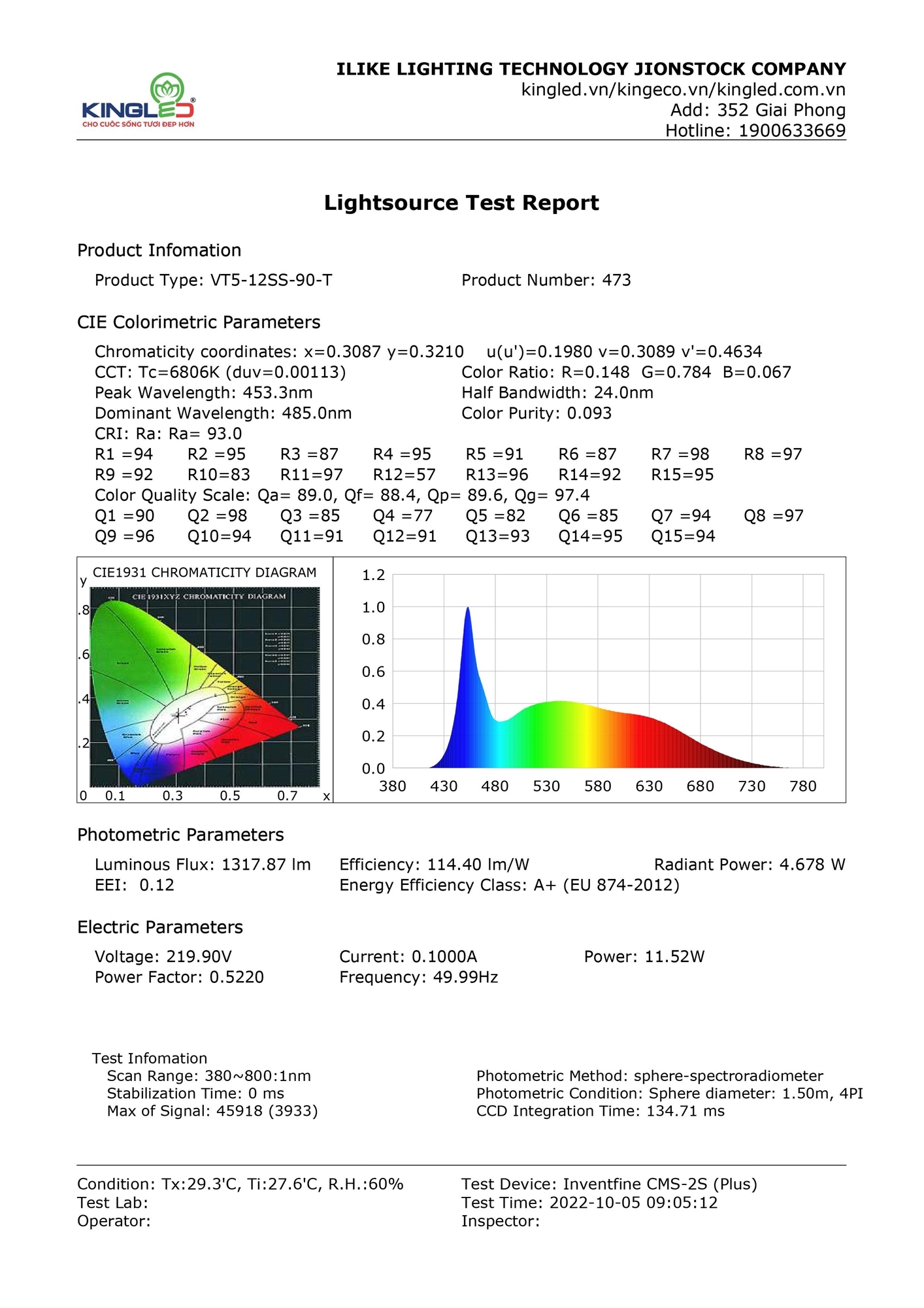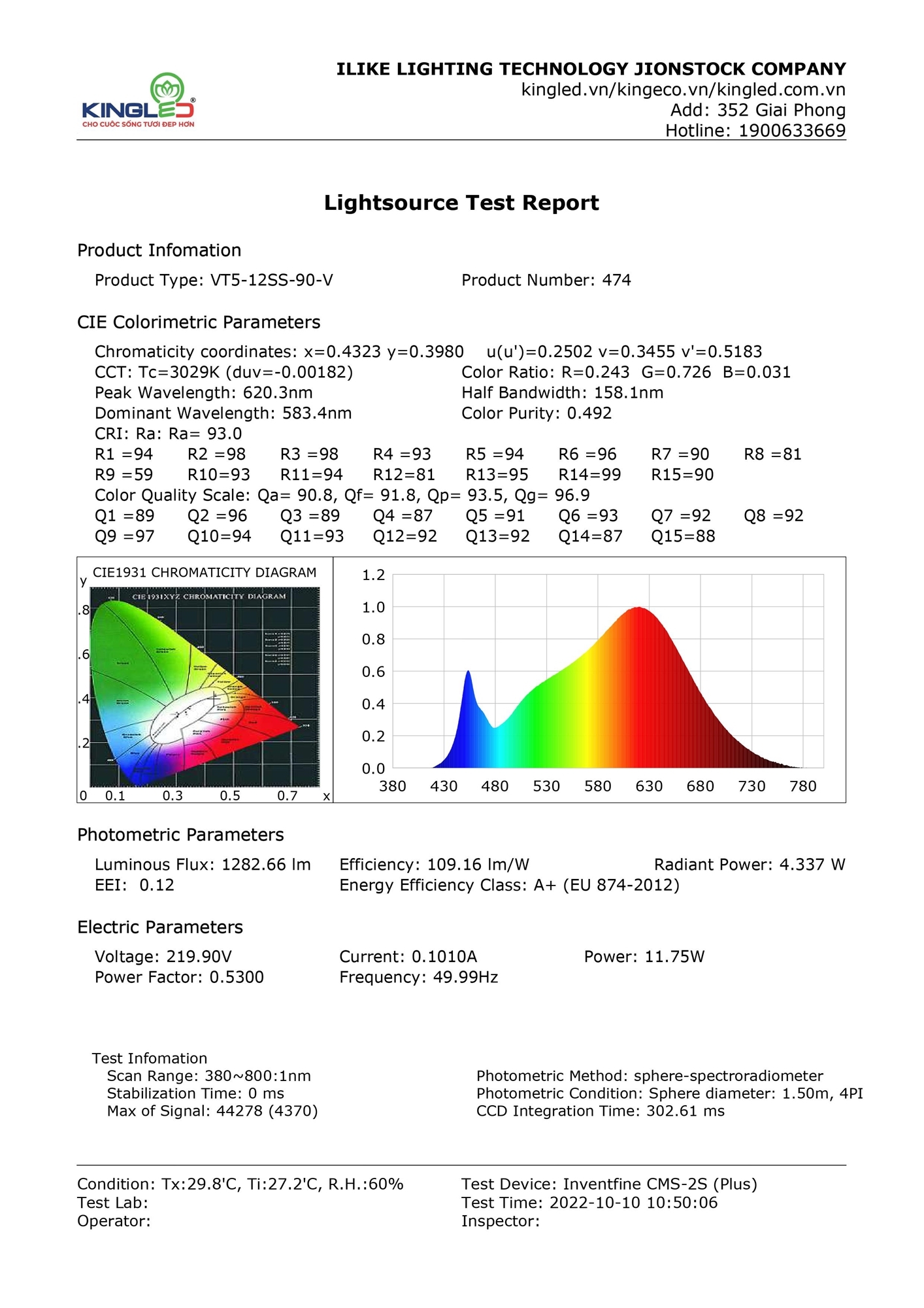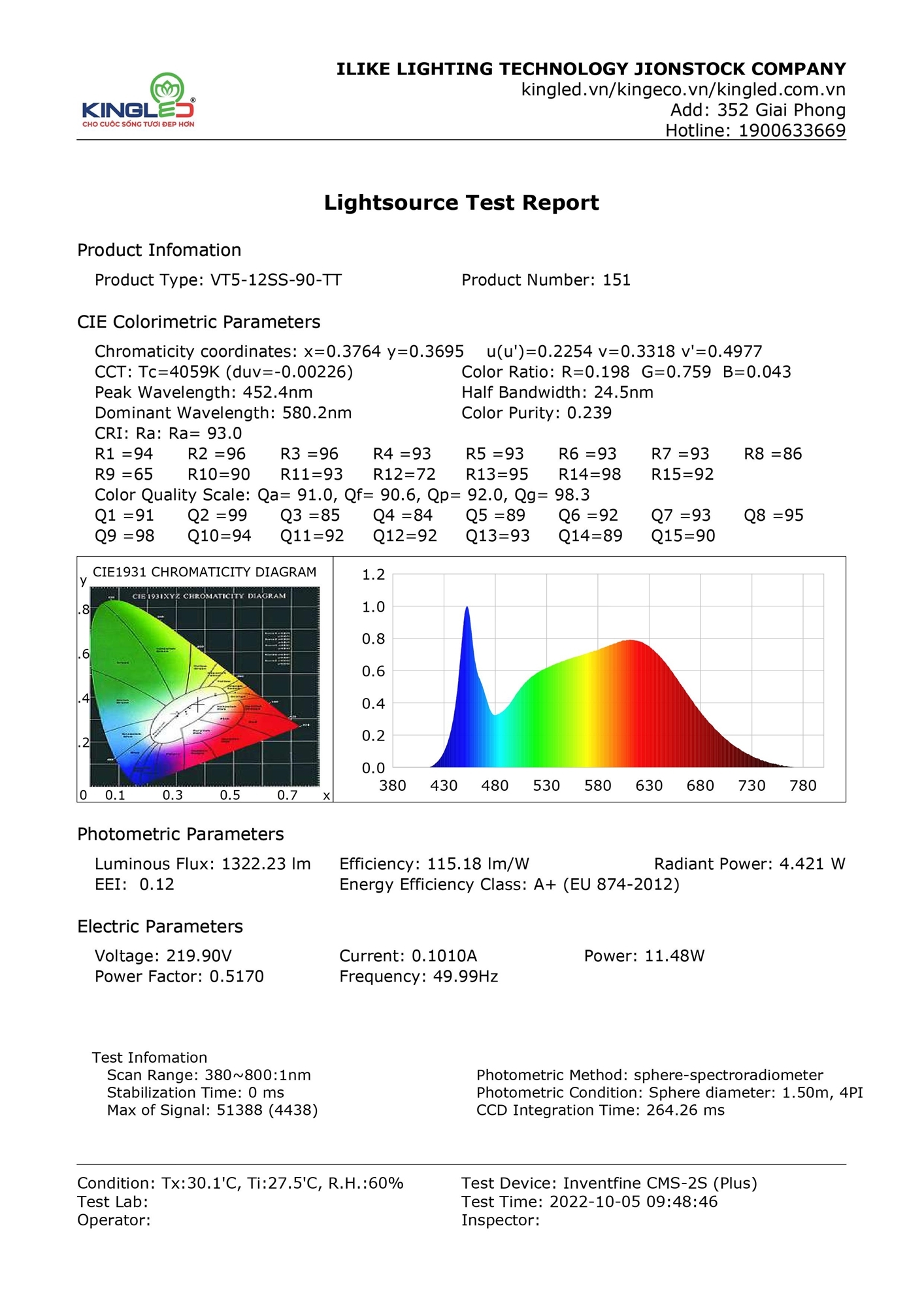 - Sản phẩm này của KingLED đạt tiêu chuẩn IP44 chống bụi và chống nước ở điều kiện trong nhà.