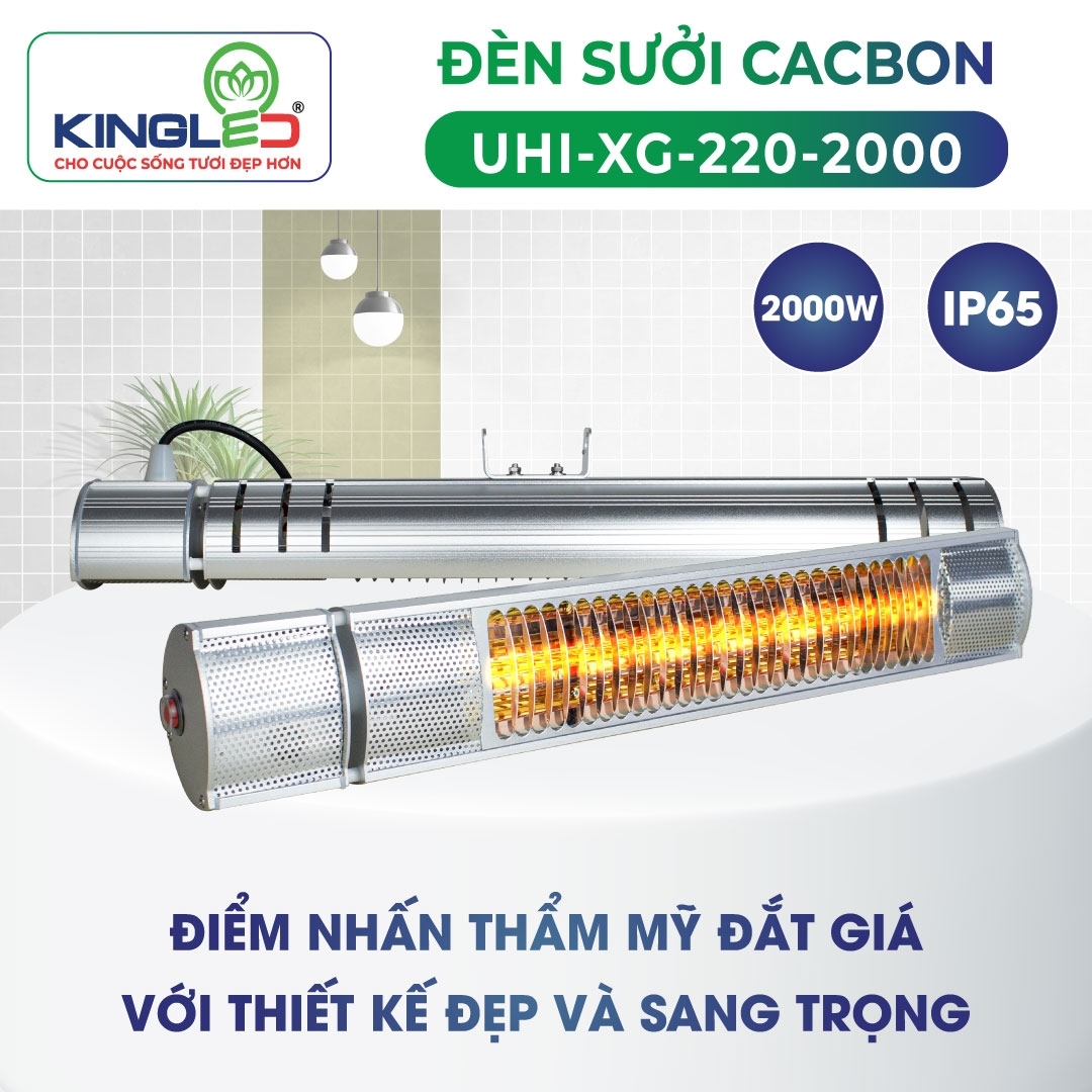 Đèn sưởi Cacbon Kingled có ưu điểm gọn nhẹ, thiết kế đẹp mắt. Dễ dàng lắp đặt, vận chuyển, vận hành và điều chỉnh thông số trong quá trình sử dụng.