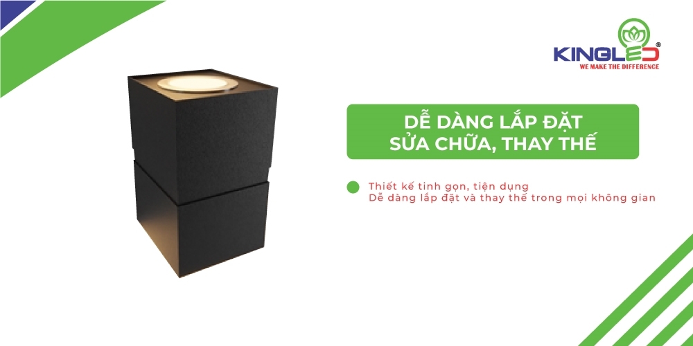 Đèn gắn tường với thiết kế tinh gọn, tiện dụng giúp dễ dàng lắp đặt và thay thế trong mọi không gian.