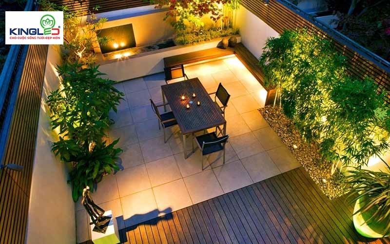 Kể cả với diện tích nhỏ, không gian ngoại thất cũng trở nên đẹp mắt hơn nhờ đèn chiếu sáng