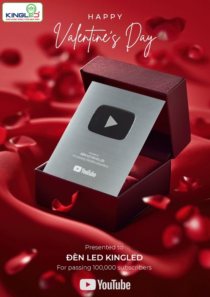 Với sứ mệnh mang đến giải pháp chiếu sáng hiện đại và trải nghiệm khách hàng tuyệt vời, Kingled không chỉ chú trọng sản phẩm mà còn xây dựng kênh Youtube chất lượng. Từ hướng dẫn sử dụng đèn LED đến giới thiệu sản phẩm mới, kênh đã vượt mốc 100.000 người đăng ký, giúp Kingled nhận nút bạc Youtube vào đúng ngày Valentine 14/2/2025 - một món quà ý nghĩa cho thương hiệu và cộng đồng.