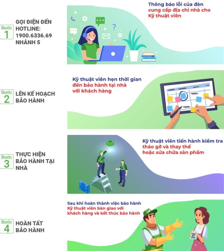 Chính sách bảo hành tại nhà được Kingled xây dựng nhằm giải tỏa những khó khăn của khách hàng trong các khâu bảo hành sản phẩm, cụ thể như sau: