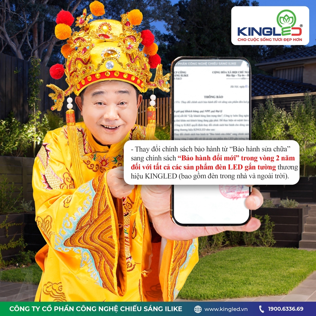 Thay đổi chính sách bảo hành từ "Sửa chữa" lên "Đổi mới" trong vòng 2 năm cho tất cả các sản phẩm đèn LED gắn tường thương hiệu KINGLED (bao gồm đèn trong nhà và ngoài trời).